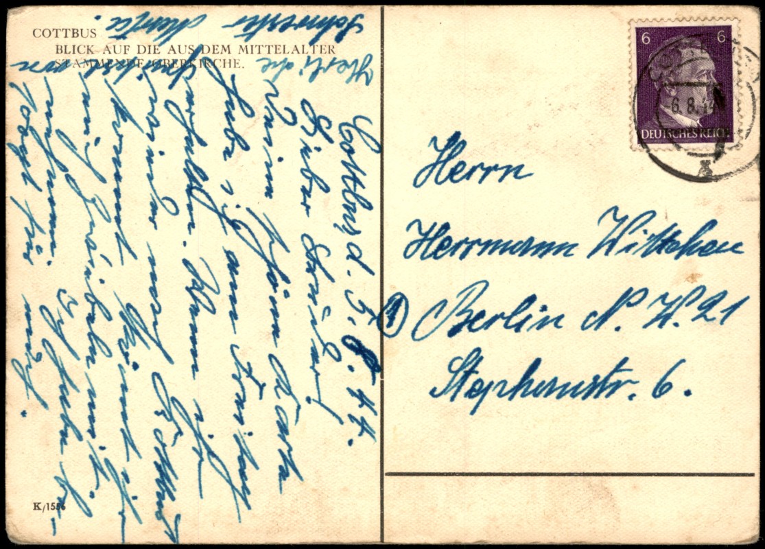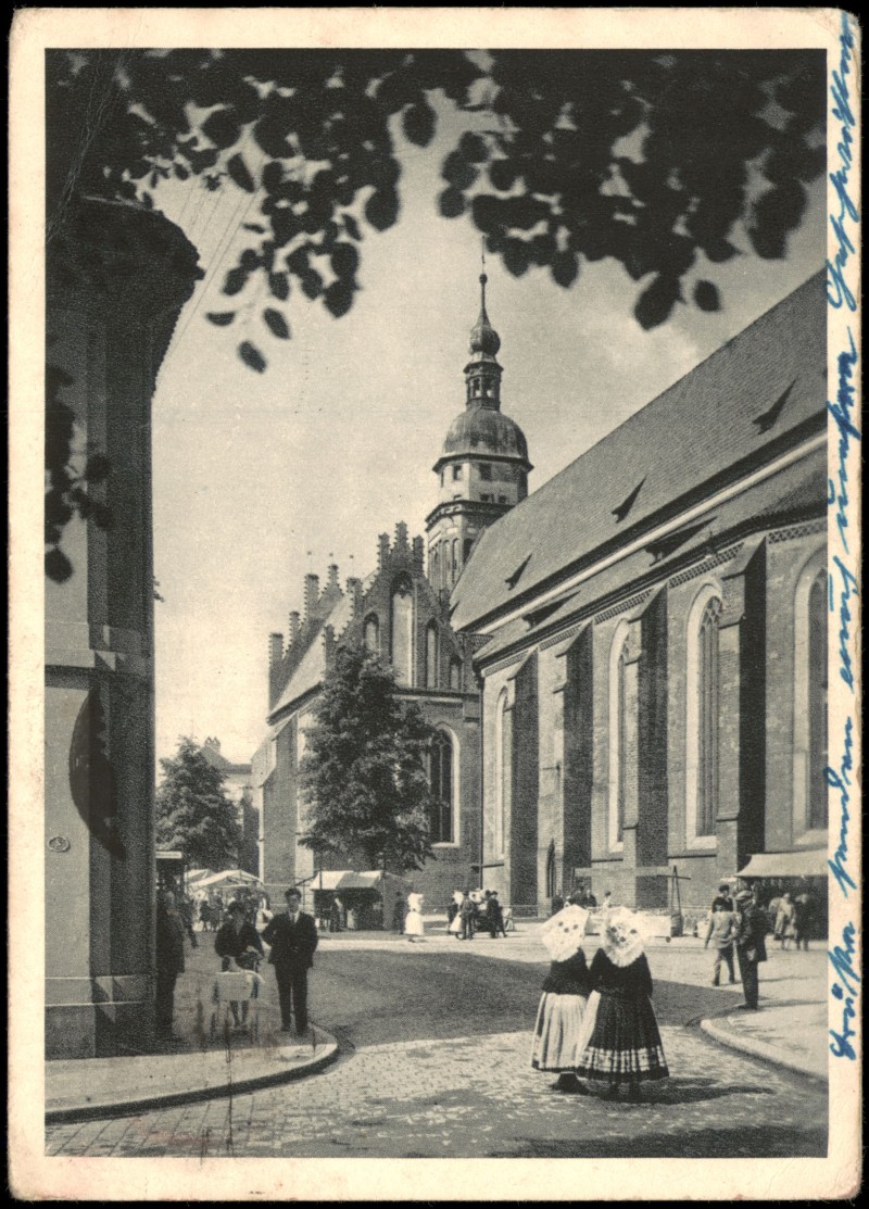Ansichtskarte: Oberkirche Marktstände Wenden Tracht - Cottbus