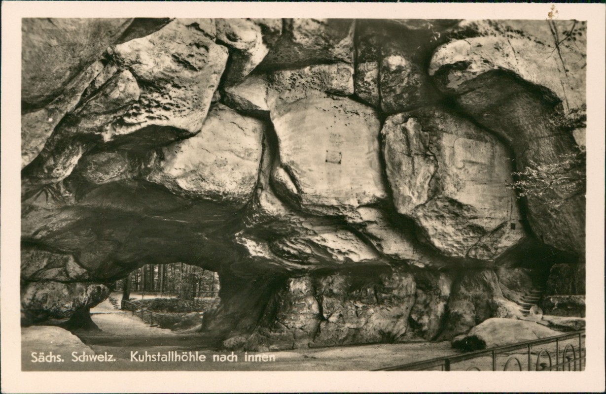 Foto Karte: Sächs. Schweiz Kuhstallhöhle nach innen - Kirnitzschtal-Sebnitz