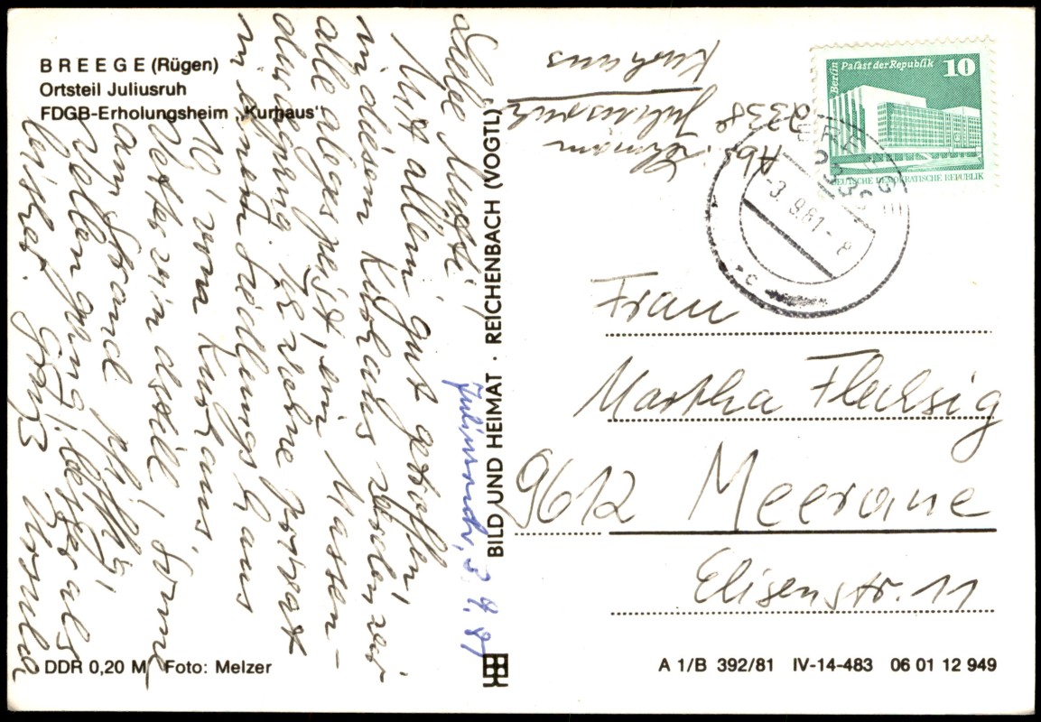 Ansichtskarte: FDGB Erholungsheim Kurhaus - Juliusruh-Breege