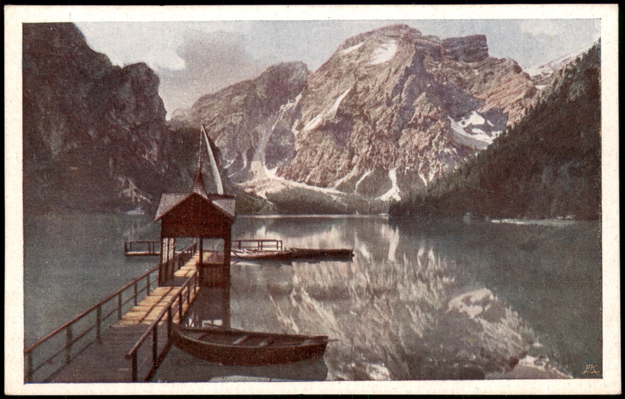 Ansichtskarte: Umland-Ansicht Berge Zugang zum See Italien - Niederdorf (Südtirol)