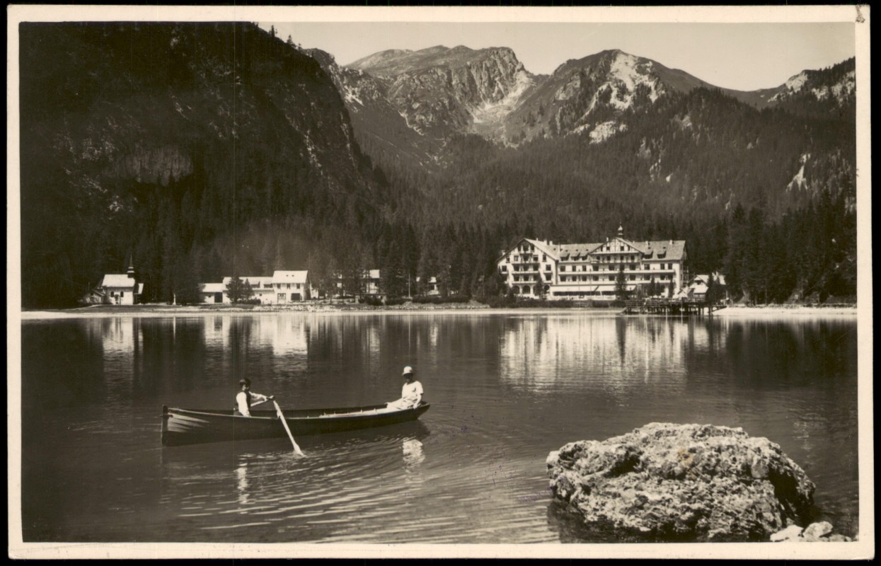 Ansichtskarte: Hotel und Rudererboot Dolomiti - Prags