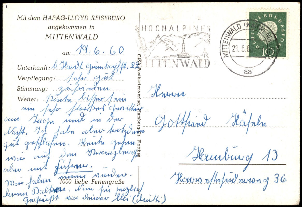 Foto Karte: Panorama-Ansicht (Ankunftskarte Hapag-Lloyd) - Mittenwald