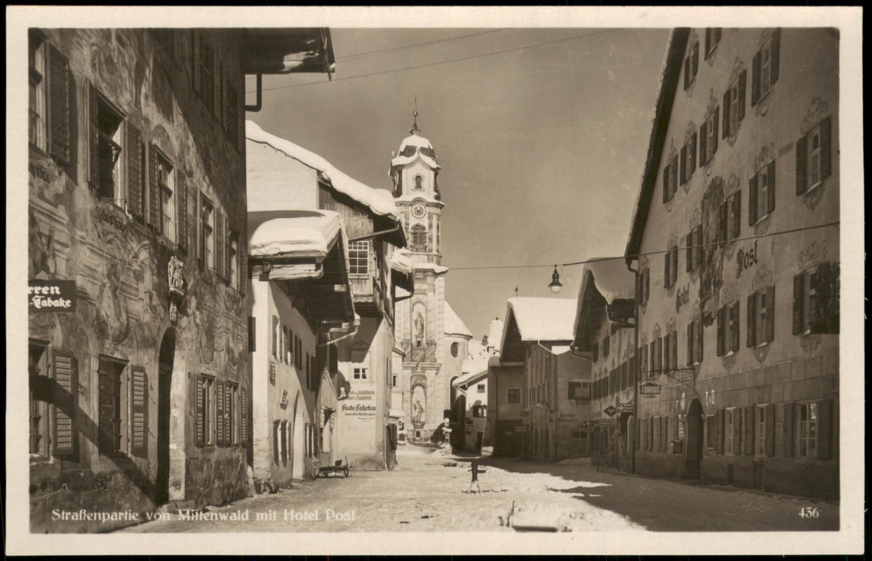 Foto Karte: Straßen Partie mit Hotel Post - Mittenwald