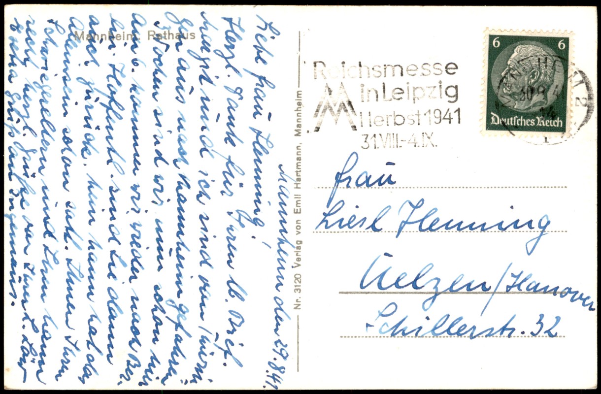 Ansichtskarte: Partie am Rathaus - Mannheim