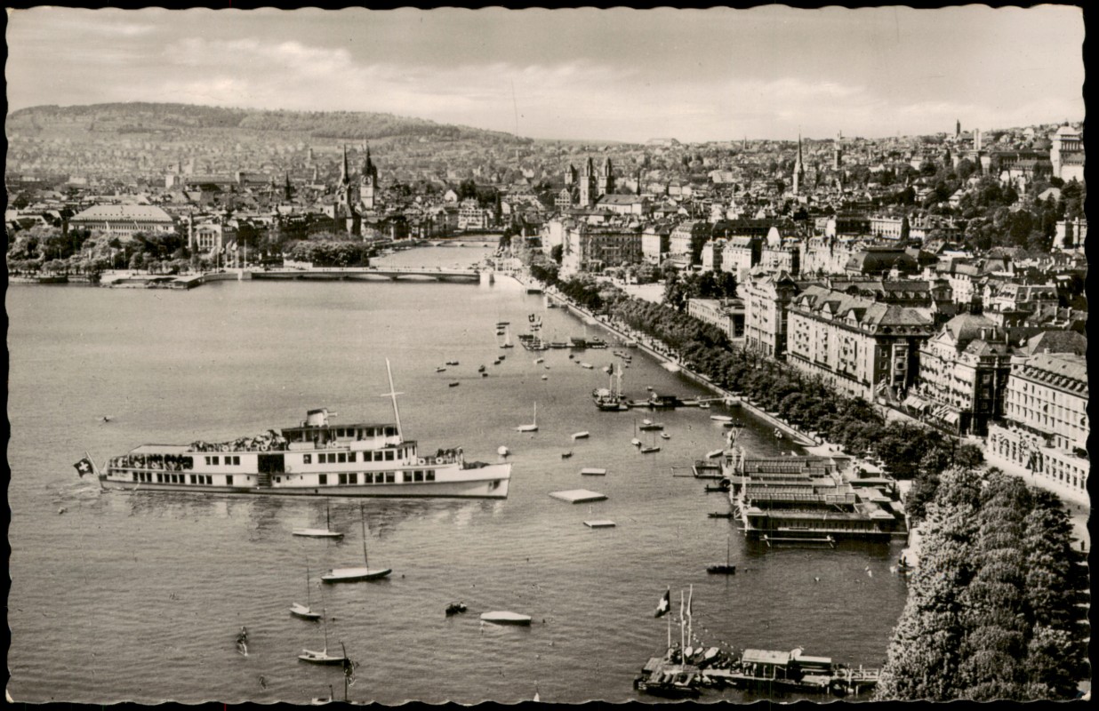 Ansichtskarte: Stadtblick - Fahrgastschiff Fotomontage - Zürich