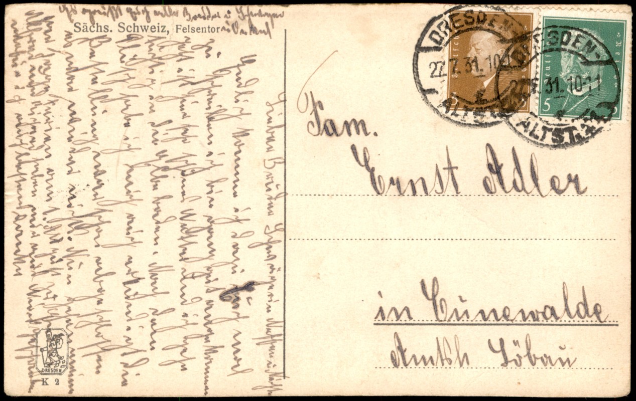 Ansichtskarte: Uttewalder Felsentor - Stadt Wehlen