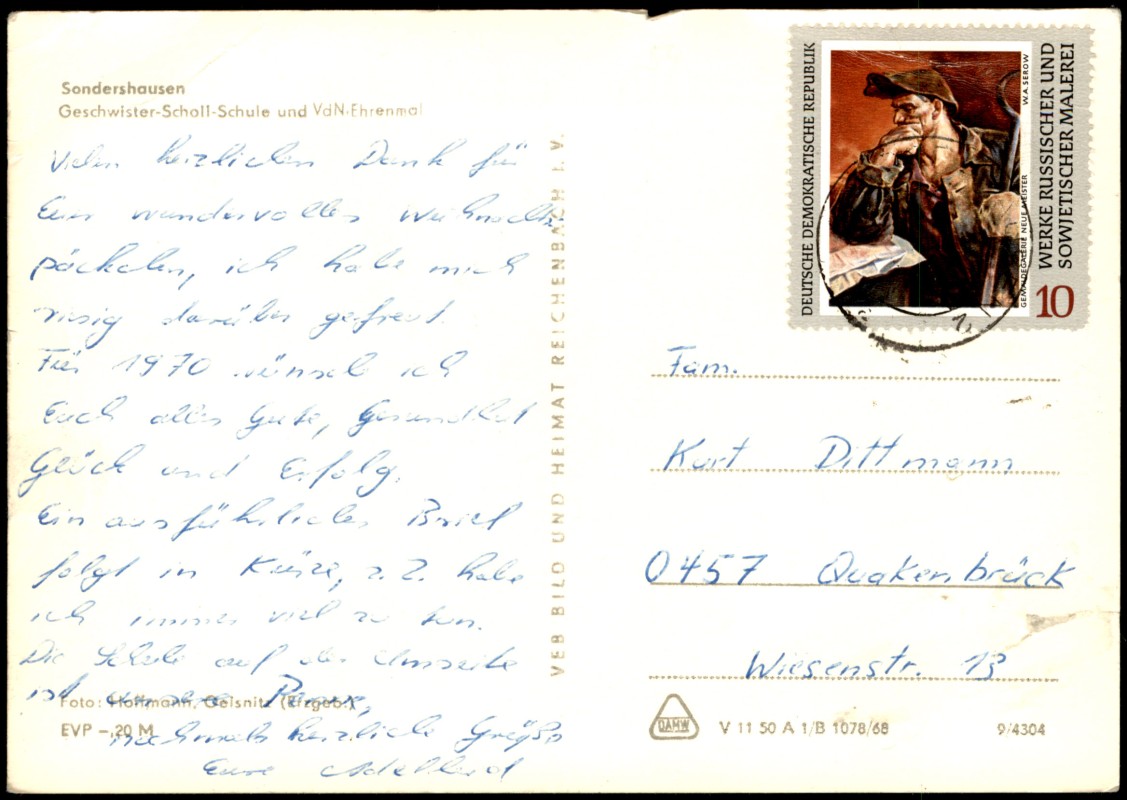 Foto Karte: Geschwister-Scholl-Schule und VdN Ehrenmal zur DDR-Zeit - Sondershausen