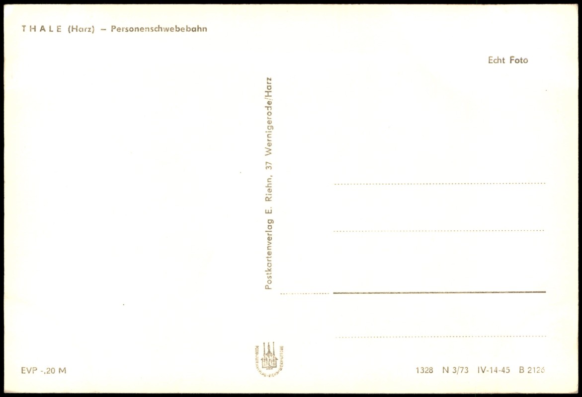 Foto Karte: Harz Personenschwebebahn zur DDR-Zeit - Thale (Harz)