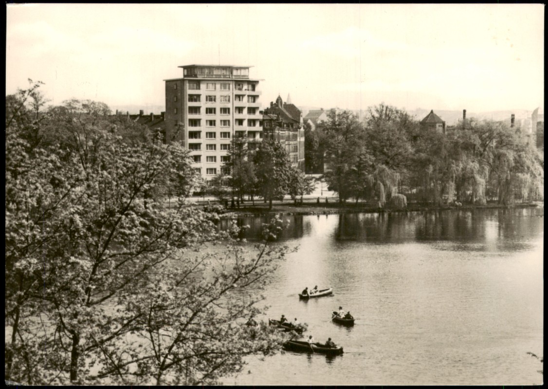 - Schloßteich Blick zum Hochhaus zur DDR-Zeit