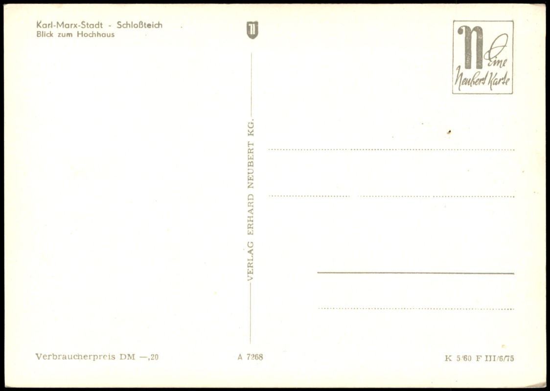 Foto Karte: Schloßteich Blick zum Hochhaus zur DDR-Zeit - Chemnitz
