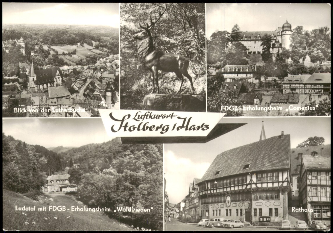 Ansichtskarte: FDGB Erholungsheim Comenius Rathaus uvm - Stolberg (Harz)
