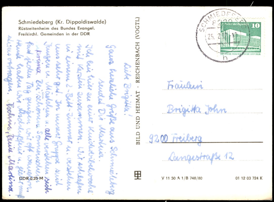 Foto Karte: DDR MB mit Rüstzeitenheim des Bundes Evangel. Freikirchen Gemeinden in der DDR - Schmiedeberg (Erzgebirge)-Dippoldiswalde