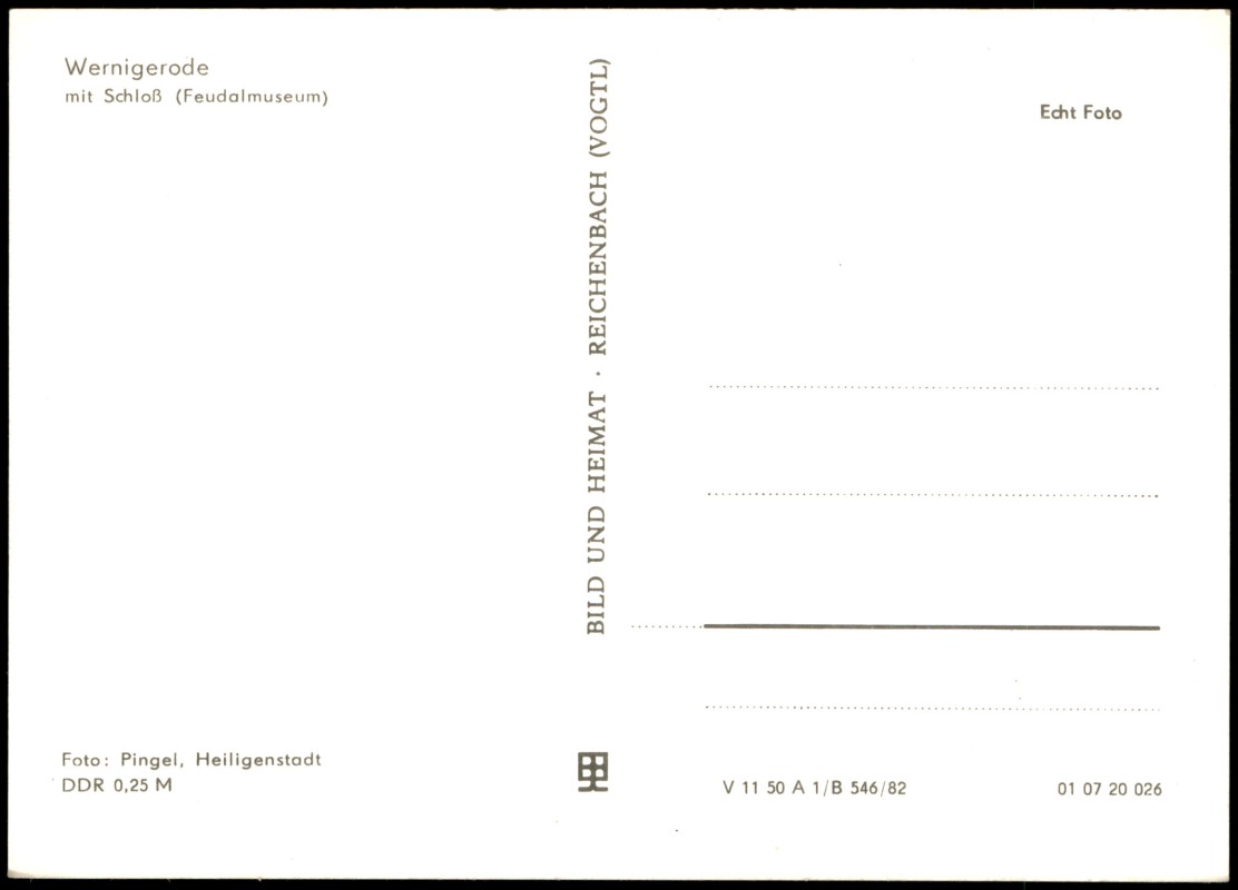 Foto Karte: Schloss Feudalmuseum Fernansicht zur DDR-Zeit - Wernigerode