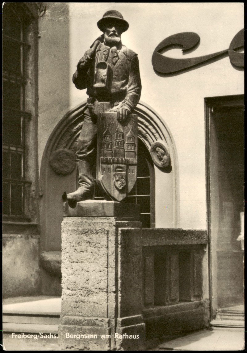 Foto Karte: DDR AK Bergmann am Rathaus - Freiberg (Sachsen)