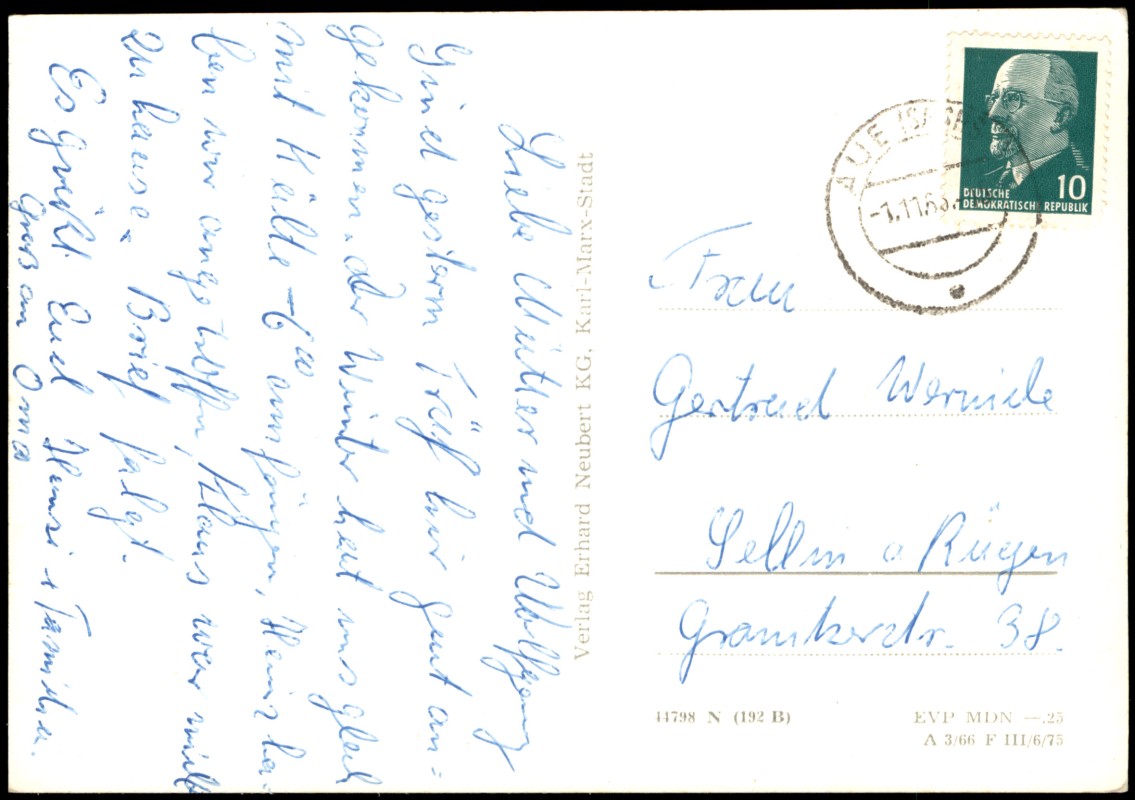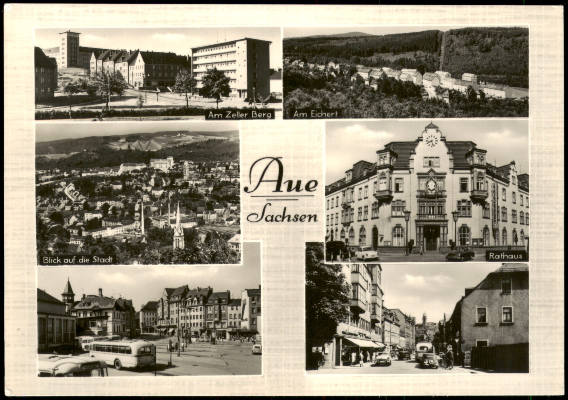 diese Karte können Sie hier kaufen:- Aue (Erzgebirge) DDR Mehrbild-AK mit Zeller Berg, Am Eichert, Rathaus uvm. 1966