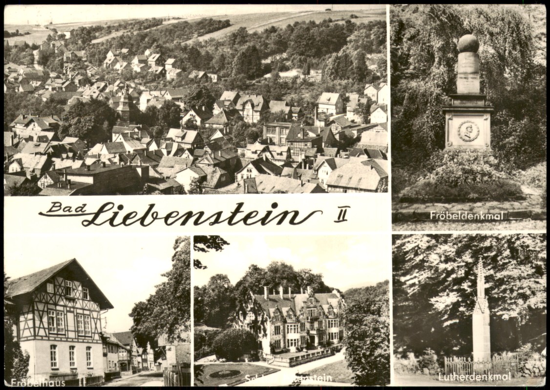 Foto Karte: DDR Mehrbild-AK mit Fröbel-Denkmal, Luther-Denkmal, Panorama uvm. - Bad Liebenstein