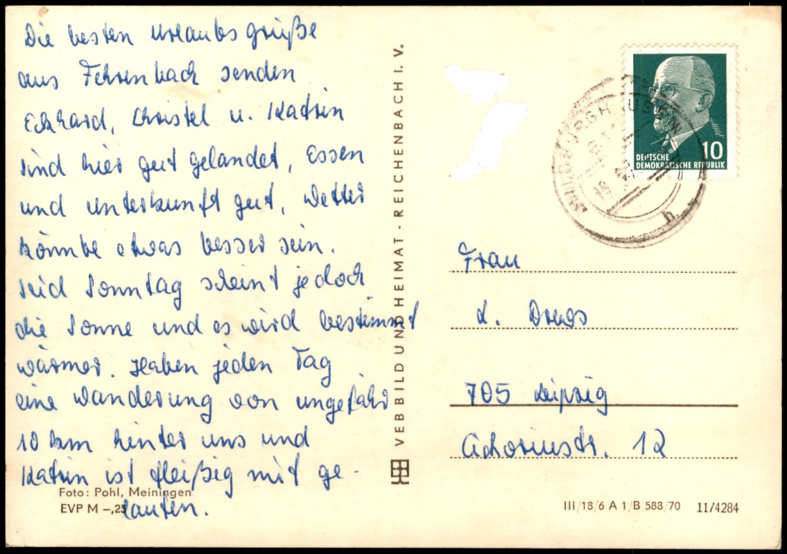 Foto Karte: DDR Mehrbildkarte mit 5 Ortsansichten - Fehrenbach