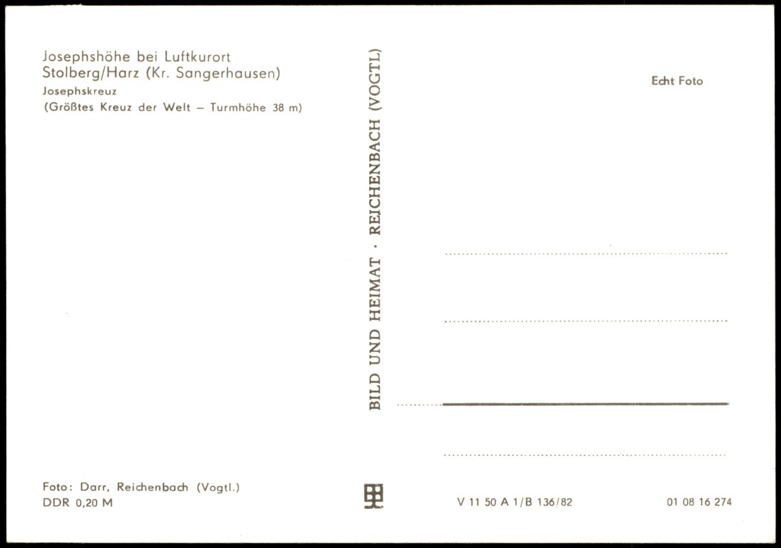 Foto Karte: Josephskreuz Josephshöhe zur DDR-Zeit - Stolberg (Harz)