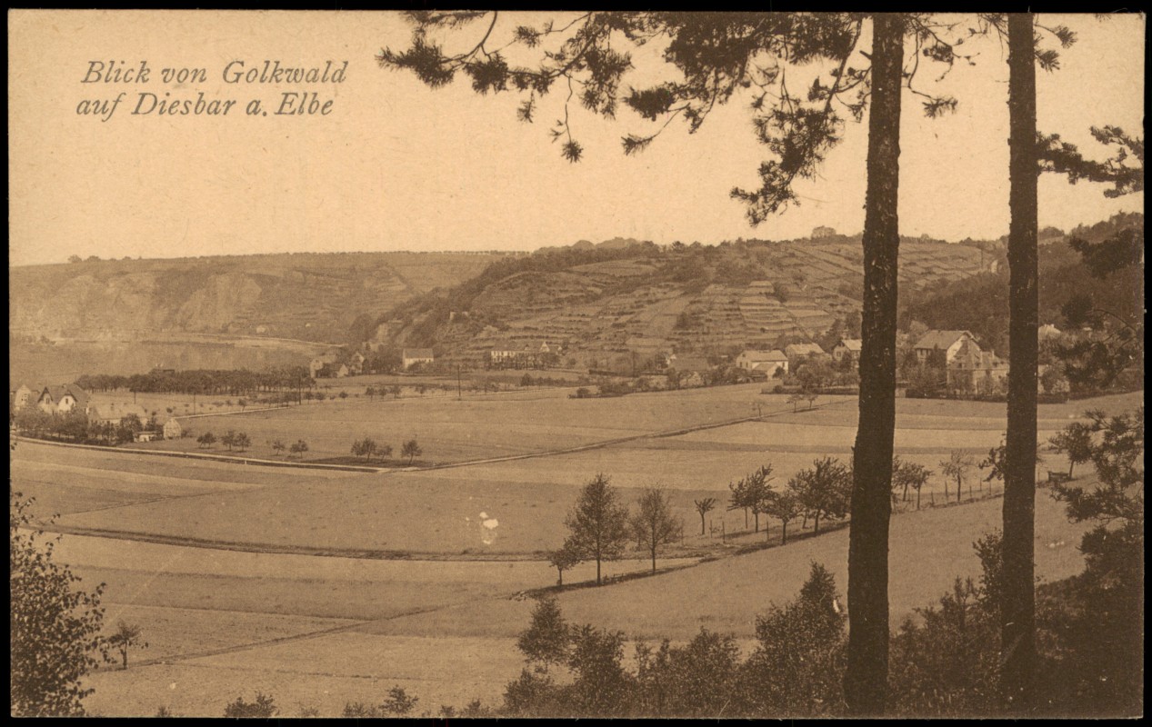 Ansichtskarte: Blick von Golkwaldauf auf die Stadt - Diesbar (Elbe)-Diesbar-Seußlitz-Nünchritz (Elbe)