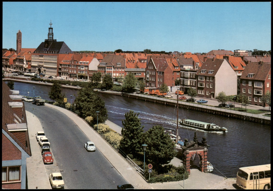 Foto Karte: Ratsdelft und Rathaus, Autos u.a. Volkswagen VW Käfer - Emden