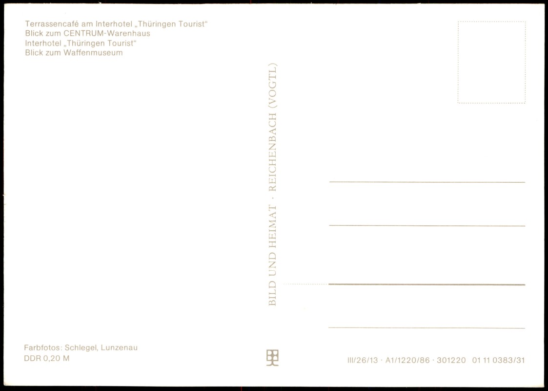 Foto Karte: DDR Mehrbild-AK mit Waffen-Museum, Centrum Warenhaus, Interhotel - Suhl
