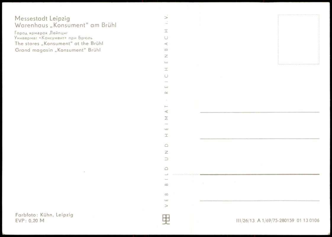 Foto Karte: Warenhaus "Konsument" am Brühl zur DDR-Zeit - Leipzig