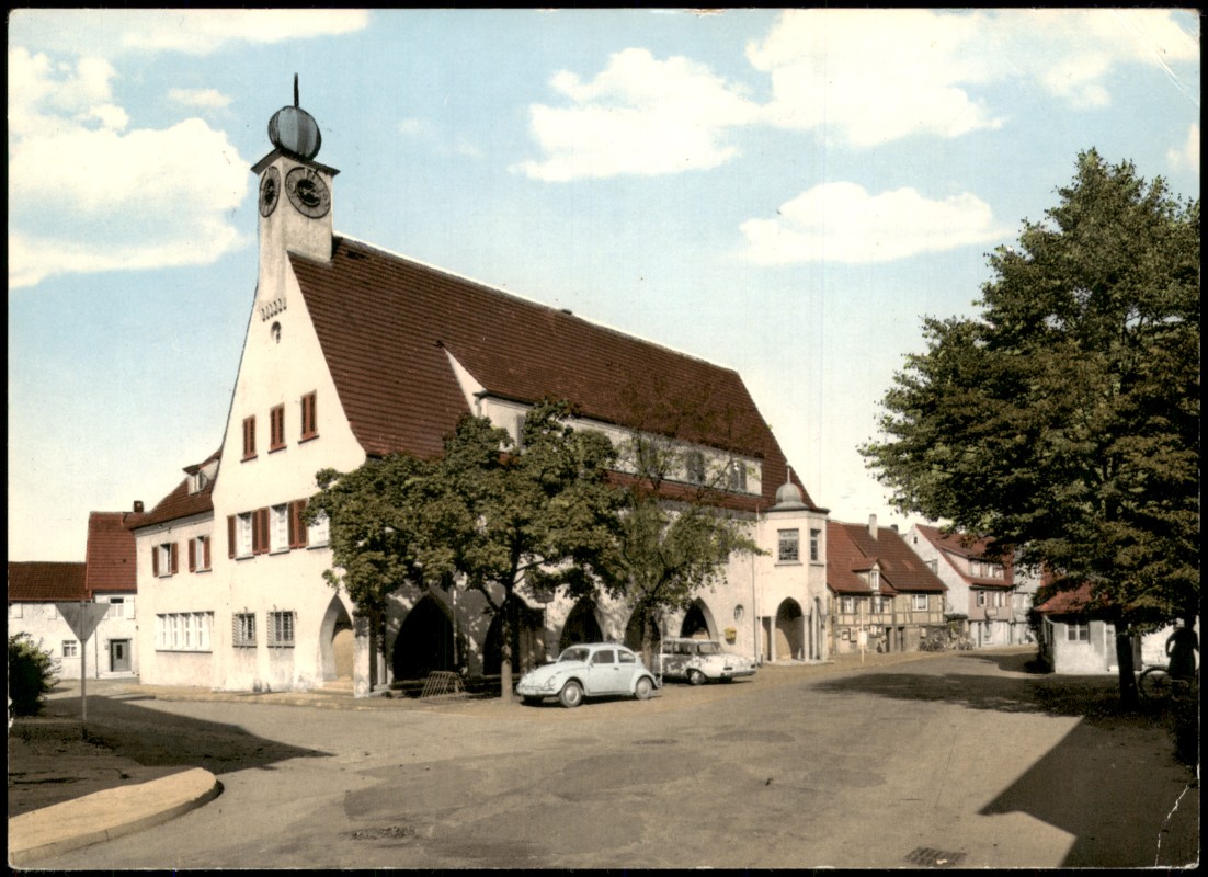 Ansichtskarte: Rathaus Süd VW Käfer Auto - Urbach Remstal
