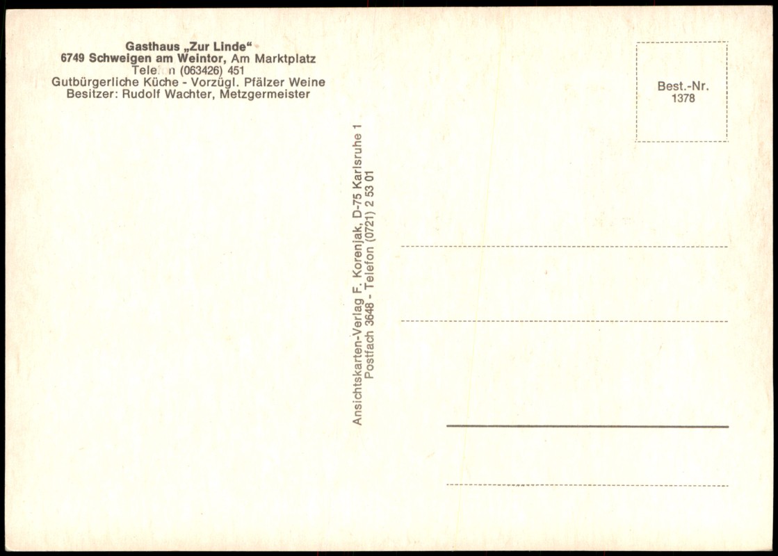 Ansichtskarte: Gasthaus Zur Linde - Gastraum - Schweigen-Rechtenbach