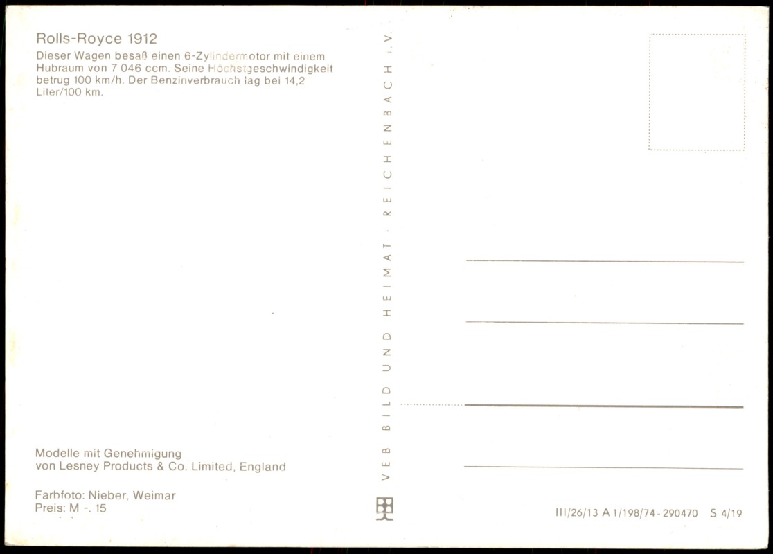 - KFZ Auto Oldtimer Rolls-Royce anno 1912 DDR-Karte