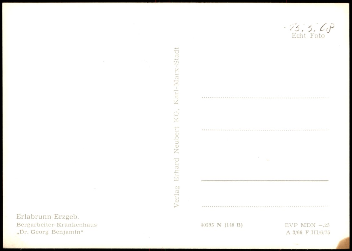 Foto Karte: Bergarbeiter-Krankenhaus "Dr. Georg Benjamin" zur DDR-Zeit - Erlabrunn-Breitenbrunn (Erzgebirge)