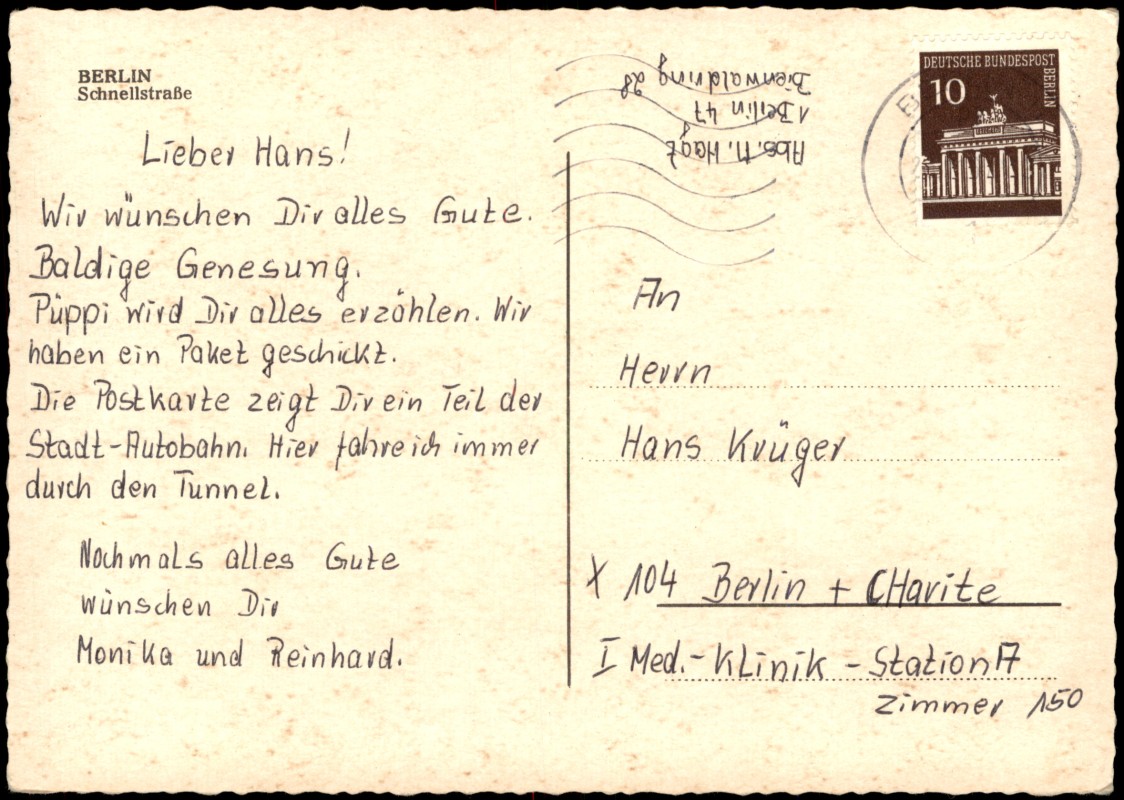 Foto Karte: Stadtteilansicht, Schnellstraße, Autos u.a. viele VW Käfer - Berlin