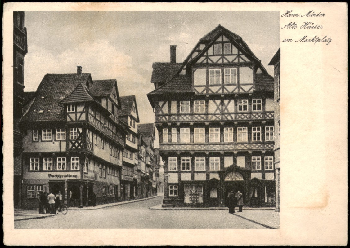 Foto Karte: Markt Marktplatz Fachwerk-Häuser Buchhandlung - Hann. Münden