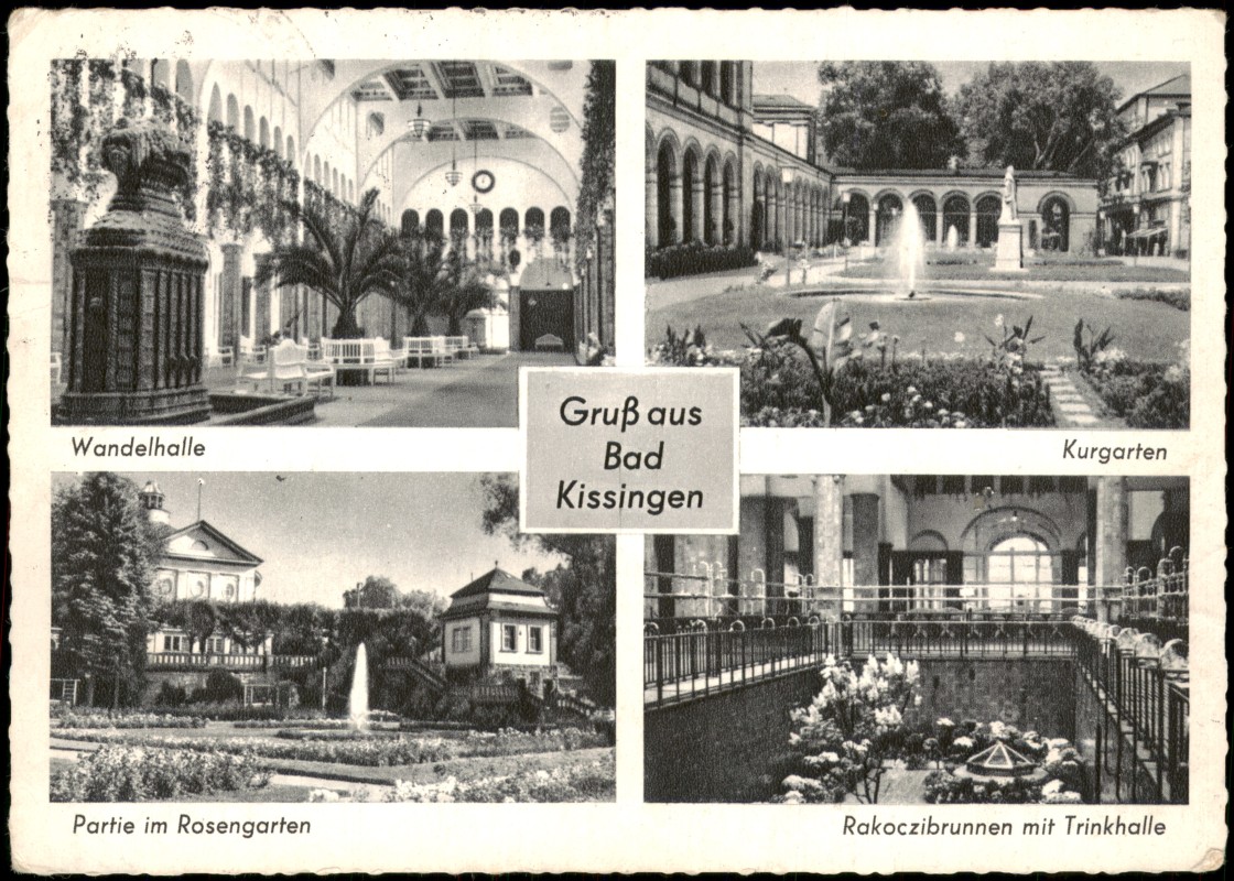 Foto Karte: Mehrbildkarte mit Trinkhalle, Rosengarten, Kurgarten, Wandelhalle - Bad Kissingen