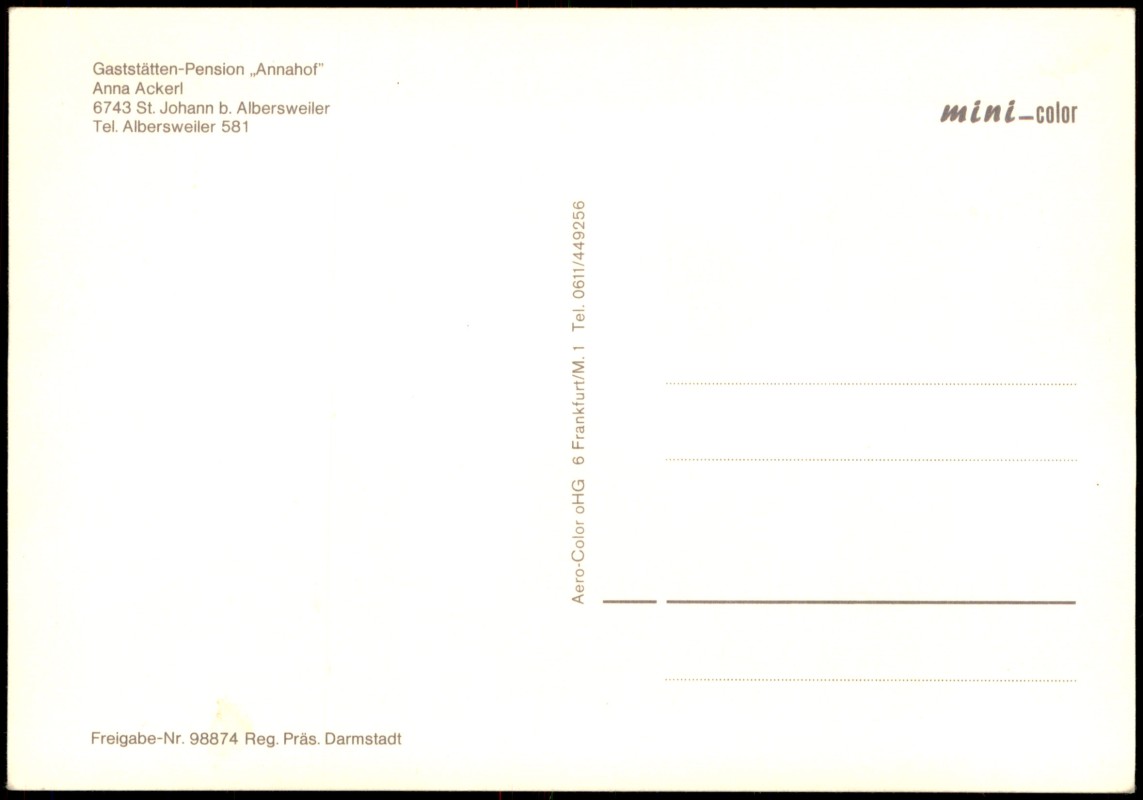 Foto Karte: Gaststätten-Pension Annahof v. Flugzeug aus, Luftaufnahme - St. Johann-Albersweiler