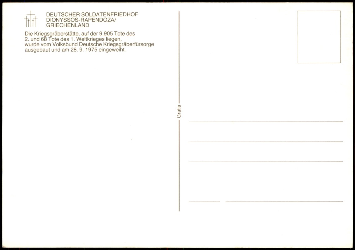 Foto Karte: DEUTSCHER SOLDATENFRIEDHOF DIONYSSOS-RAPENDOZA GRIECHENLAND - .Griechenland