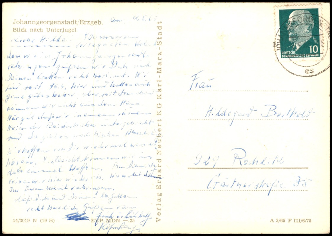 Ansichtskarte: Blick nach Unterjugel - Johanngeorgenstadt