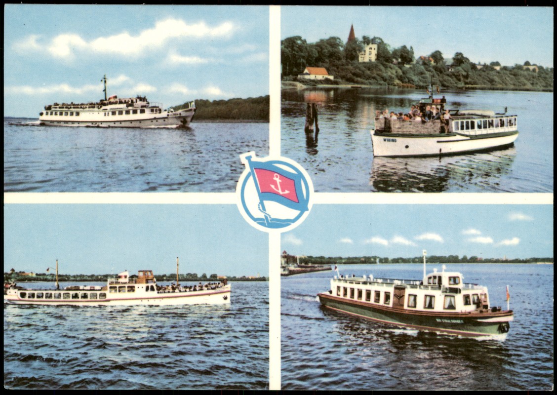 Foto Karte: DDR Mehrbildkarte mit 4 Fahrgastschiffen Schiffe - Stralsund
