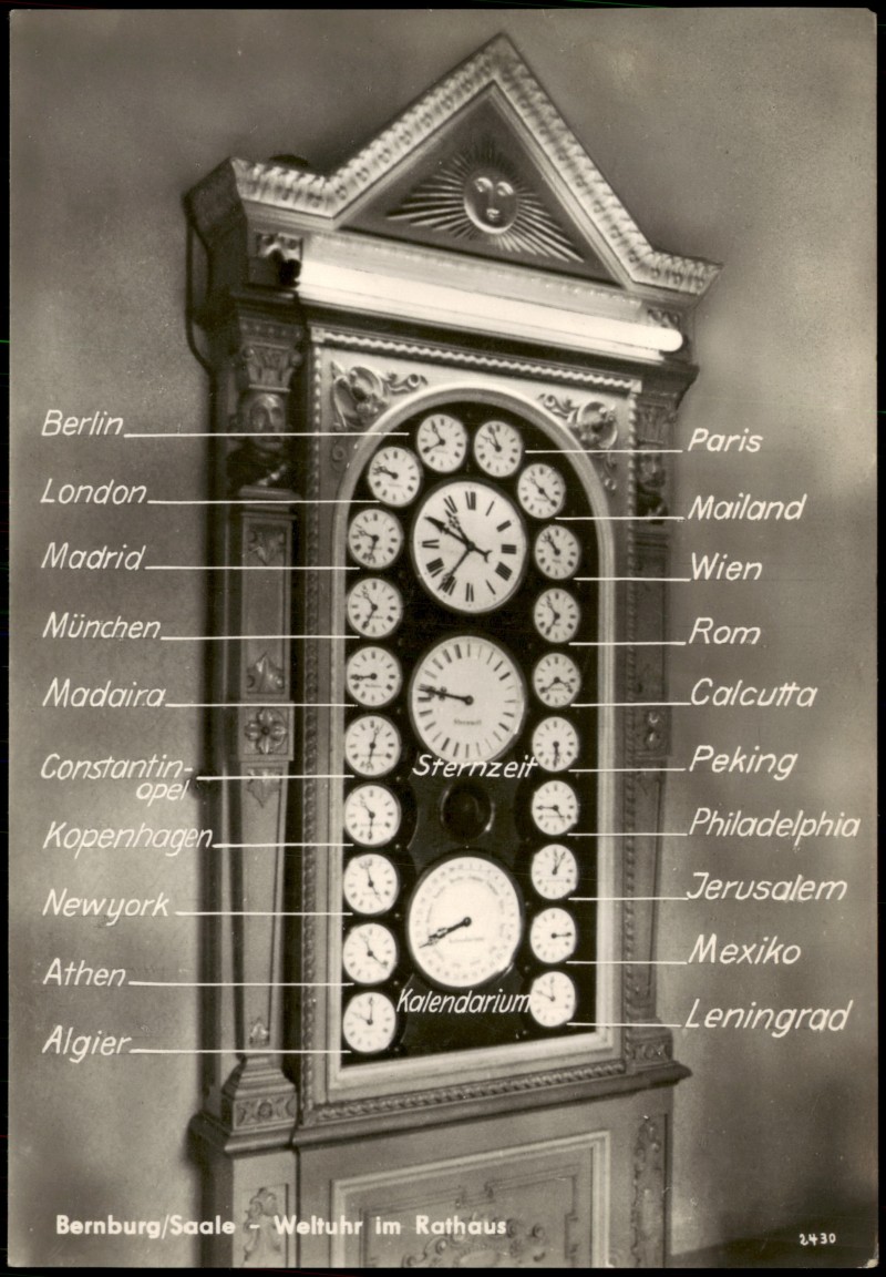 Foto Karte: DDR AK Weltuhr im Rathaus - Bernburg (Saale)