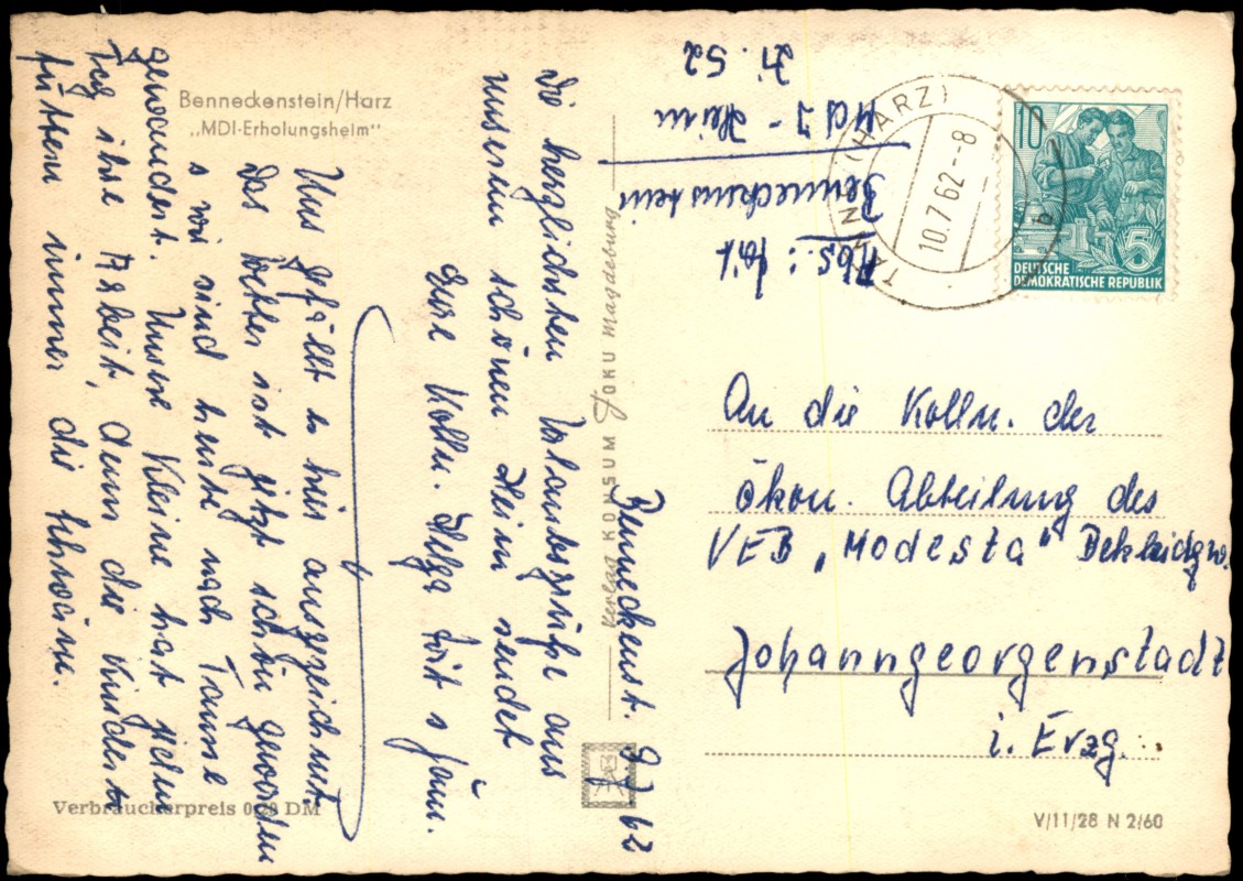 Ansichtskarte: MDI-Erholungsheim mit Schwanenteich - Benneckenstein