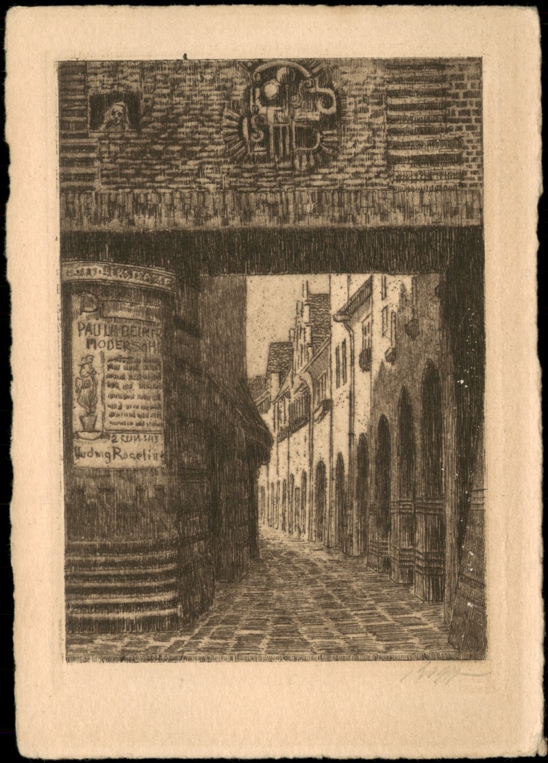 Ansichtskarte: Böttcherstraße - Federzeichnung - Bremen