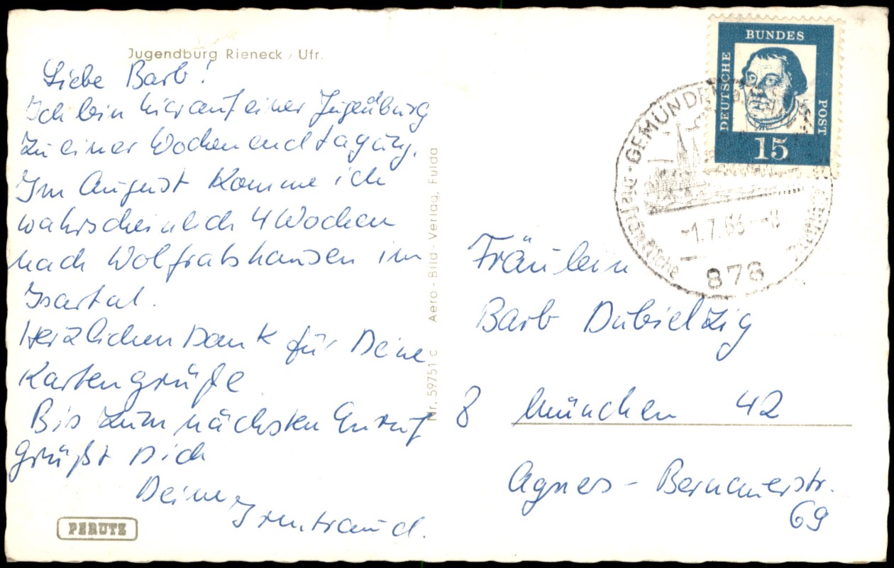 Ansichtskarte: Luftbild Stadt und Jugendburg - Rieneck