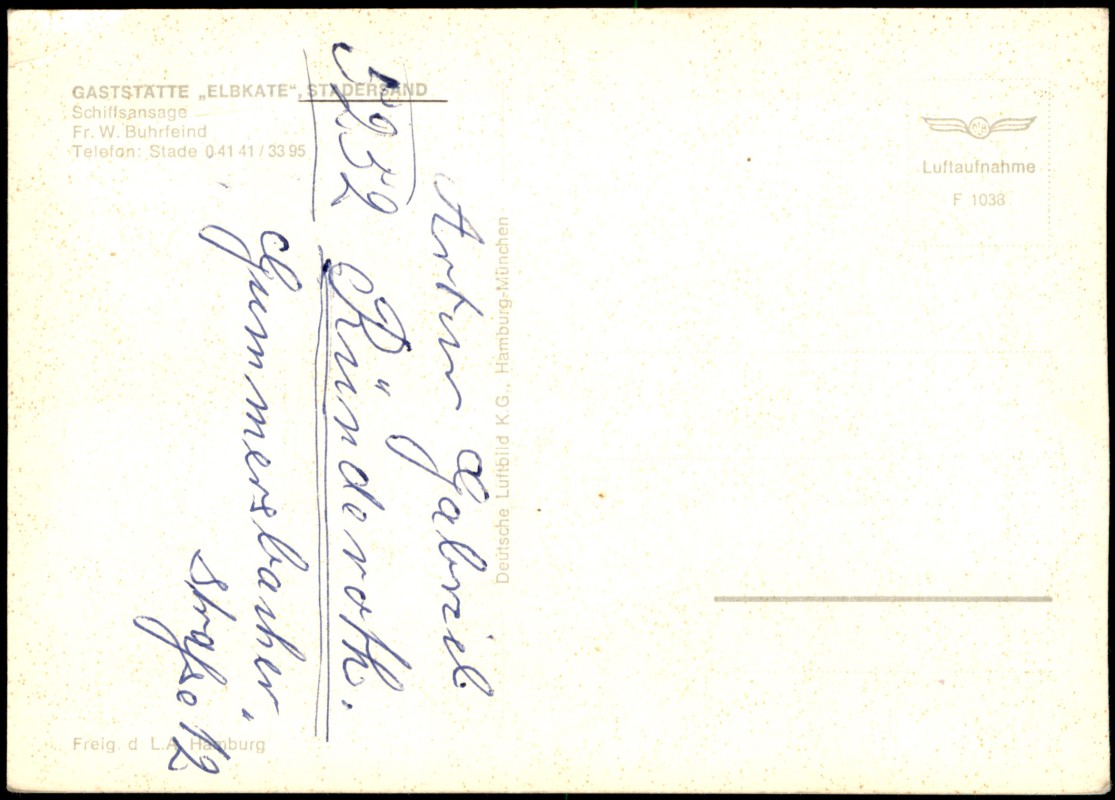 Ansichtskarte: Luftbild Stadersand Gaststätte Elbkate - Stade
