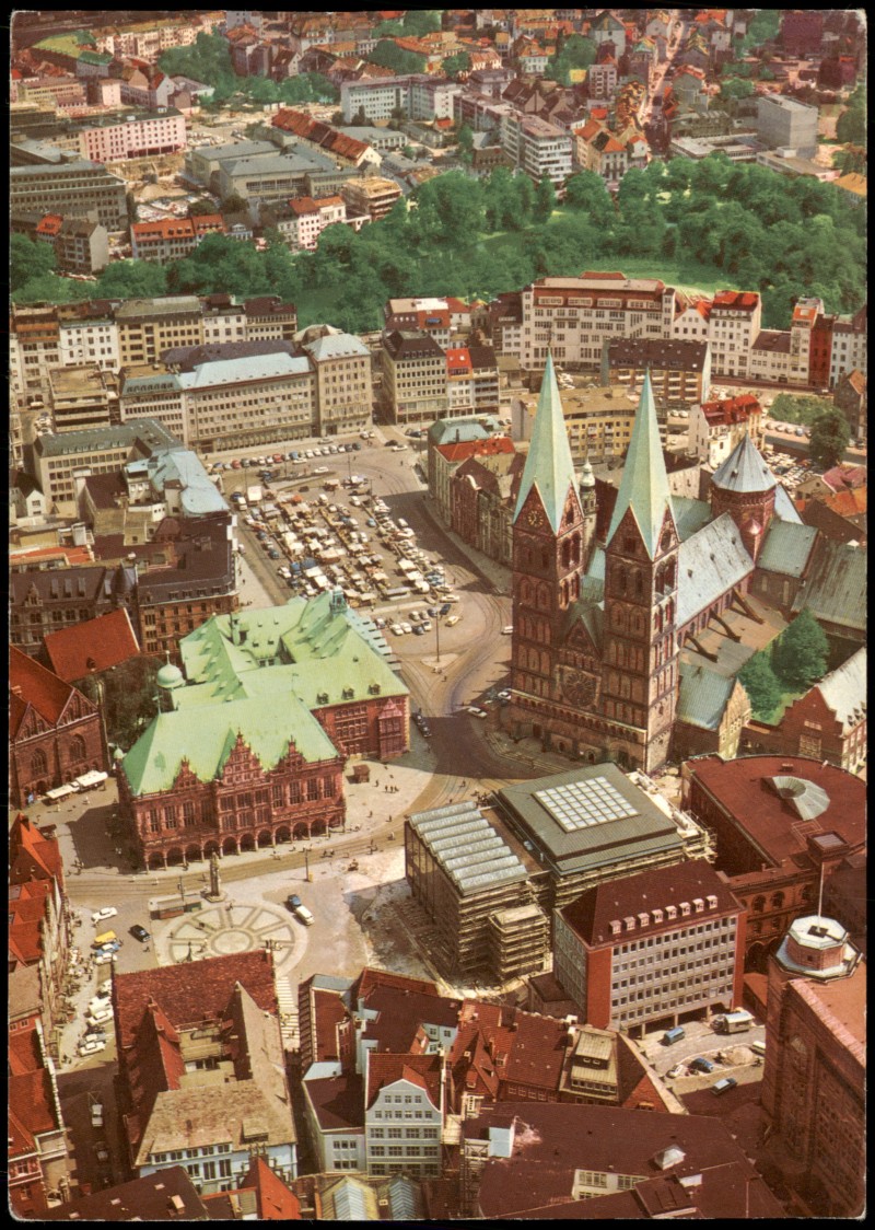 Foto Karte: Marktplatz und Domshof vom Flugzeug aus, Luftaufnahme - Bremen