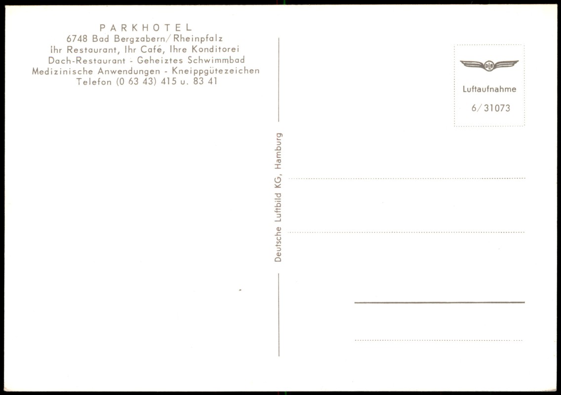 Ansichtskarte: Luftbild Luftaufnahme PARK HOTEL - Bergzabern