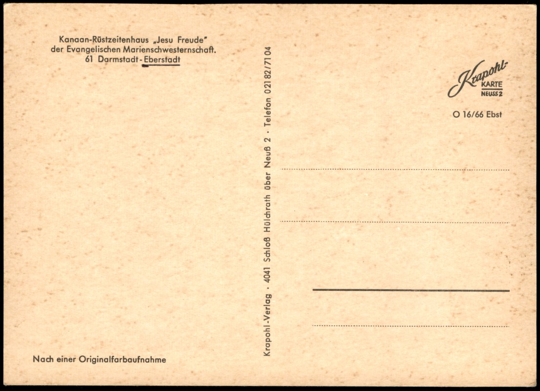 Foto Karte: Kanaan-Rüstzeitenhaus Jesu Freudeder Evangelischen Marienschwesternschaft - Eberstadt-Darmstadt
