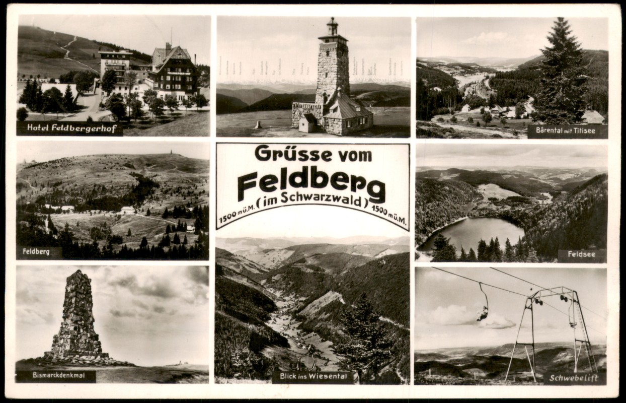 - Feldberg Schwarzwald Mehrbild-AK u.a. Feldbergerhof, Feldsee, Bismarck-Denkmal uvm.