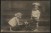 - Eine monochrome Atelieraufnahme (Echtfoto) zweier Kinder. Ein Mädchen in hellem Kleid schiebt eine kleine, mit Blumengirlanden geschmückte Schubkarre. Daneben steht ein Junge mit einem großen Strohhut und festlicher Kleidung.