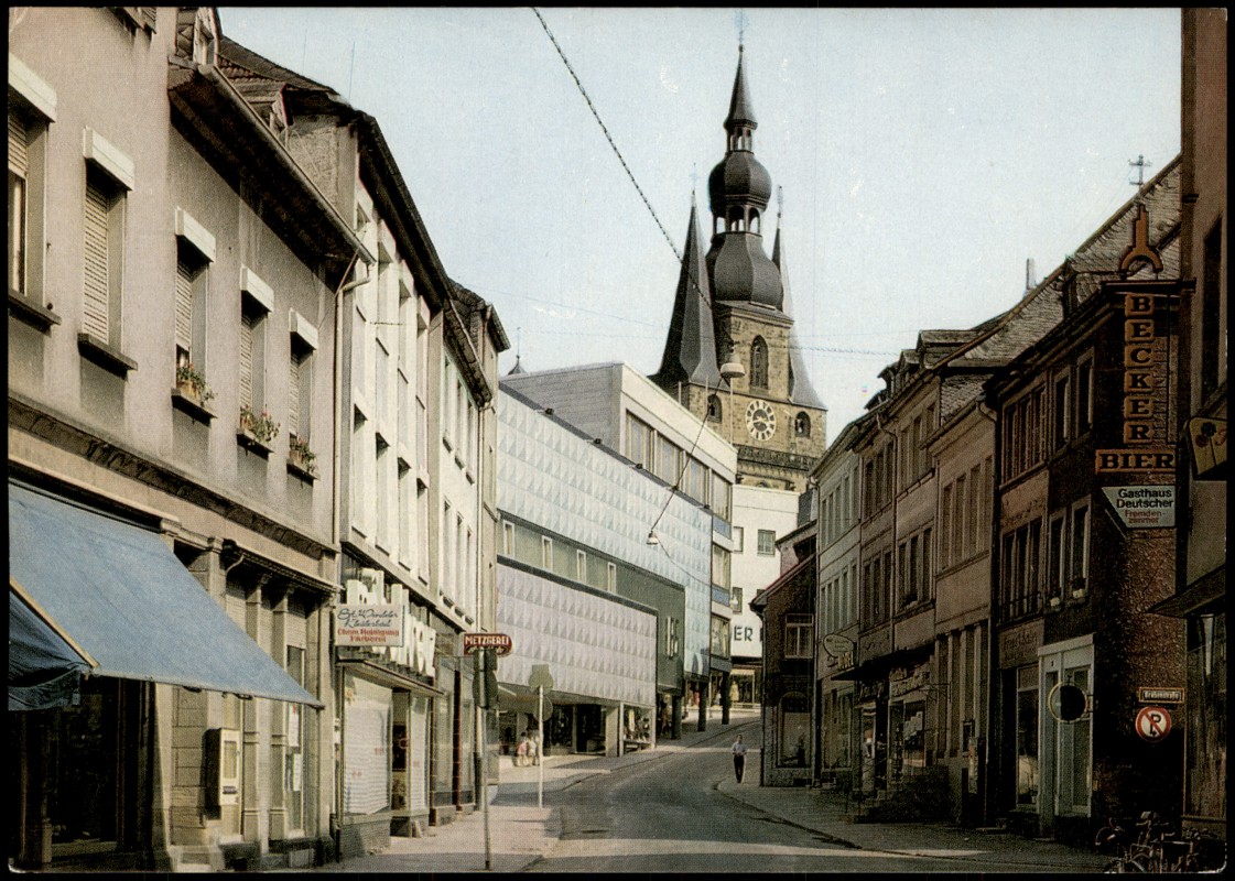 Foto Karte: Ortsansicht Straßen Partie Geschäfte Metzgerei - Sankt Wendel