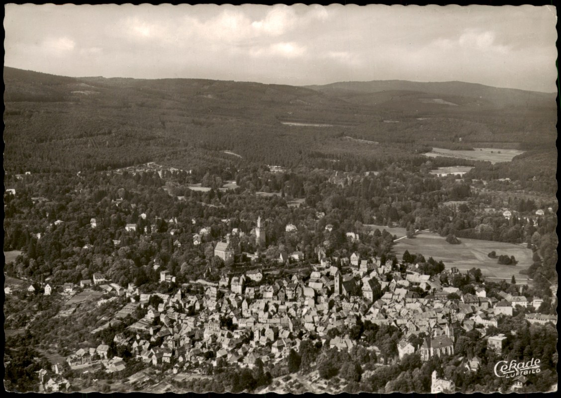 diese Karte können Sie hier kaufen:- Kronberg / Cronberg (Taunus) Panorama-Ansicht Gesamtansicht v. Flugzeug aus 1956