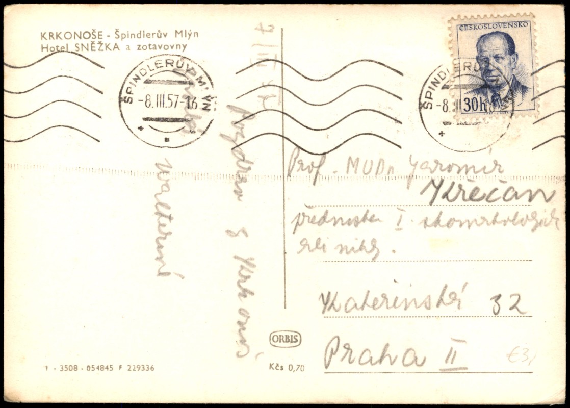 diese Karte können Sie hier kaufen:- Spindlermühle Špindlerův Mlýn | Spindelmühle Winteransicht mit Hotel Sněžka 1957